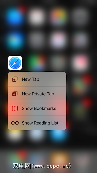 如果您使用的是iPhone 6s或更高版本,请开始使用快速操作作为Safari的网关。当您3D触摸应用程序图标时,您会找到用于打开新标签页,私人标签页或进入阅读列表的选项。