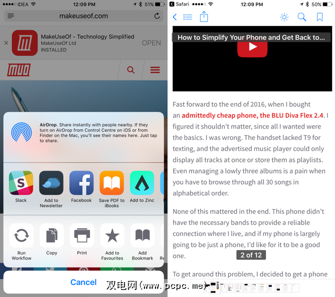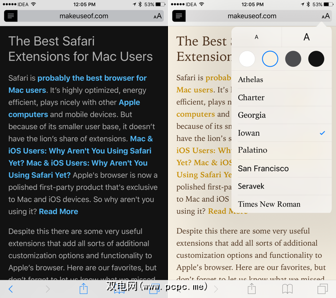 我不使用阅读列表,因为存在更好的选择(口袋和Instapaper),但是Safari的阅读器模式是完全不同的野兽。只需轻按URL栏最左侧的一个按钮,即可将混乱的页面转变为有组织的,最小格式的页面。