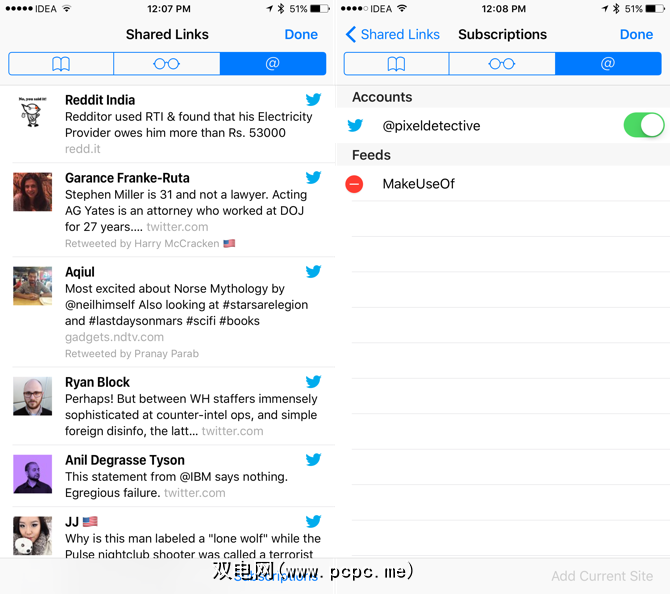 Safari具有一项称为“共享链接"的功能,基本上是供稿阅读器。您可以从页面添加供稿,新文章将显示在此处。或连接到Twitter帐户以查看您所关注的人共享的所有链接。