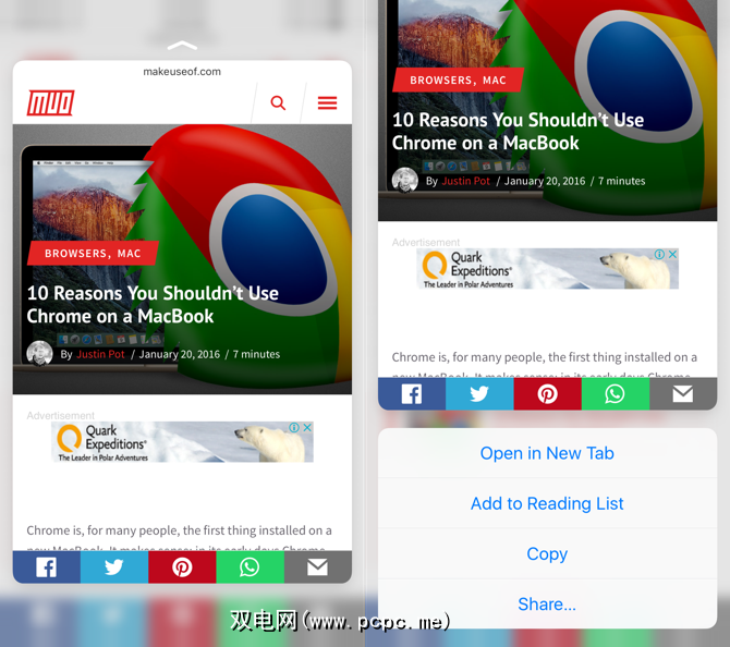如果您的iPhone支持3D触摸,则可以更严格地挤压链接以获取页面的弹出视图。这是在决定进入链接之前预览链接的好方法。要阅读它吗?再按一次更深,它将打开。或者只是松开手指退回。