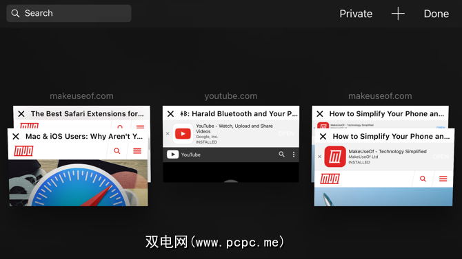 在iPad上,您会在选项卡切换器的顶部找到搜索栏(就像在Mac上的Safari中一样)。