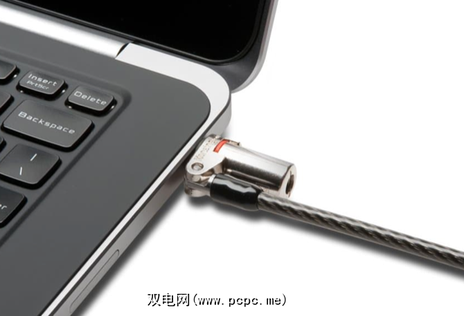 阻止某人偷电脑的最好方法是将其锁定。许多笔记本电脑都有一个可用于笔记本电脑锁的小槽口,例如: