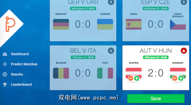 使用起来非常简单。进行注册,然后会向您显示剩余匹配项的表格。每个小组下面都有加号和减号按钮。单击那些按钮,说出您认为他们将在比赛中得分的目标。在任何比赛结束时,Prediktr都会更新结果并将您的排名显示在整体排行榜中。