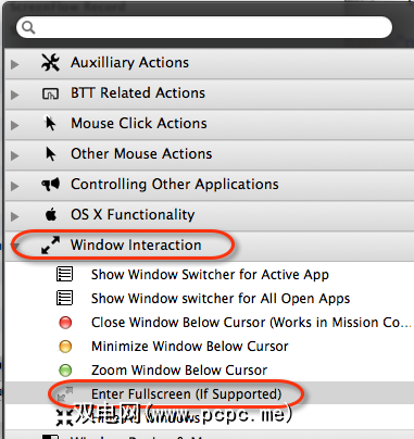 BTT中有几个强大的预定义操作,我想指出另外一个可以使您的湿透好奇心。有时我会以全屏模式打开一个应用程序,但是在应用程序窗口右上角的按钮可能很难在27英寸的iMac上进行访问。