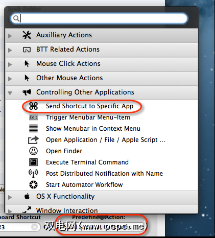 BTT中某些最强大的功能仍然是预定义的操作。例如,有一个操作(在控制其他应用程序>向特定应用程序发送快捷方式内),实际上是将键盘快捷键发送到指定的应用程序。