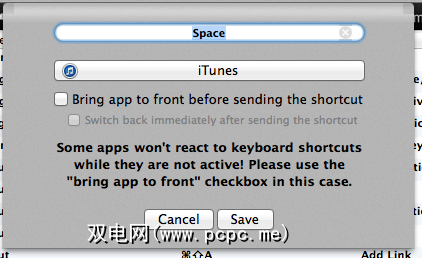 例如,从任何内部应用程序,我可以将快捷方式发送到iTunes以暂停或播放当前选定的曲目,而无需切换到iTunes。我已使用触控板上的“单指TipTap中键"触发了这一全局动作。我对Rdio使用了类似的操作。