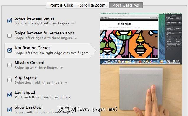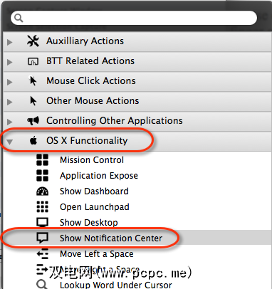 使用BTT,您可以分配几十个手势之一来激活通知中心。