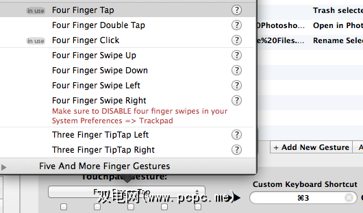 要设置BetterTouchTool“上下文菜单",请在BTT中选择或添加一个应用程序,然后创建一个新的触摸板手势。确保选择与其他分配的手势不冲突的手势。为该手势分配键盘快捷键或预定义的动作。