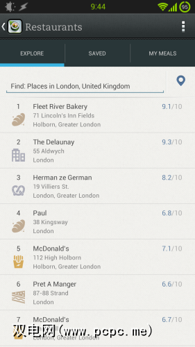 Evernote Food还包括一个新屏幕,用于搜索和剪切您想在其中用餐的餐厅。在Foursquare的支持下,您可以同时使用该功能搜索附近的餐厅,并为即将到来的旅行做准备。这是在伦敦附近的餐馆的搜索: