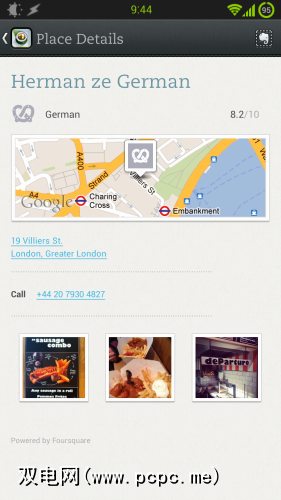 它几乎具有您期望的所有内容:名称,Foursquare等级,地图和地址,电话号码,有时甚至是一些很小的图像(无法调整大小)。评论明显缺失,但这是可以理解的:Evernote很大程度上是一种个人体验,并且通过包含众包的社交评论,该公司可能会迷失其重点。尽管如此,这仍然限制了餐厅在屏幕上的用处:如果您真的想找点好吃的东西,则可能必须结合使用Evernote Food和Urbanspoon之类的工具或这些其他有用的应用程序之一来确定在哪里用餐。