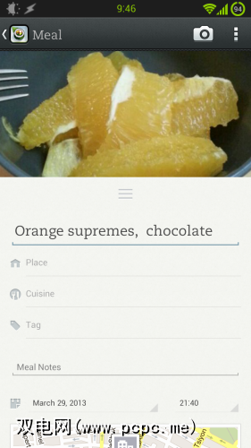 尽管有新功能,Evernote Food的存在理由还是在记录膳食。无论您是喜欢只与朋友一起记录特别的饭菜,还是像我一样,将它用作饮食日志来记录您的所有饭菜,Evernote的饭菜记录功能都是该应用程序中最成熟的部分,并且在此新版本中仍然令人愉快。这是一顿饭的样子: