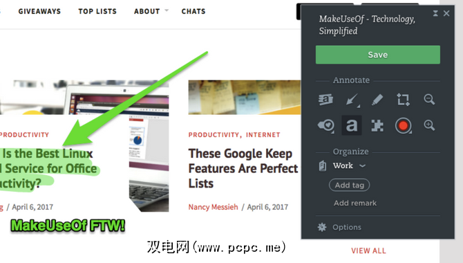 Evernote的网络剪辑器是浏览器扩展可以剪辑和注释您在网络上找到的站点和图像。然后将它们保存到您的Evernote帐户。如果您正在研究特定主题,或者只是想确保自己不会失去在网上找到的很棒的东西,这将特别有用。
