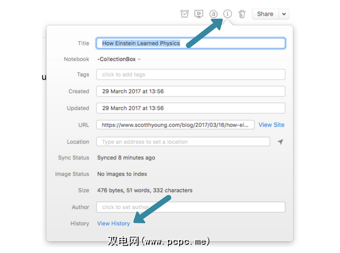 如果要从便笺的先前版本中检索数据,则需要注册Evernote Premium。 Evernote可以存储各种版本的笔记,因此您可以根据需要轻松地恢复到这些版本。