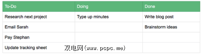 上表是最简单形式的看板。对于您自己的工作流程,应包括所需的任何列,无论多少列。
