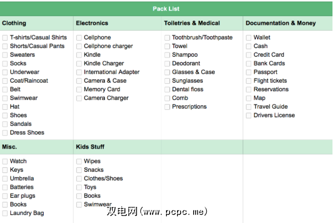 我们都去度假了,结果发现我们忘了带些明显的东西。要阻止这种情况再次发生,请创建您自己的装箱单。您可能只有一个主列表,也可以为不同类型的旅行创建一些列表:一日游,寒假,周末度假等。