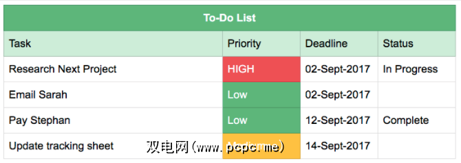 如果您想使待办事项列表保持简单,可以使用这样的模板为您服务。使用任务状态和优先级列使列表保持最新。而且,您可以通过将行拖放到其他位置来轻松地重新排序列表。