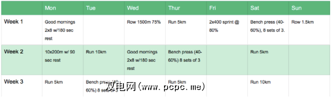 为了轻松计划和/或记录锻炼数据,可以使用下面的表格。
