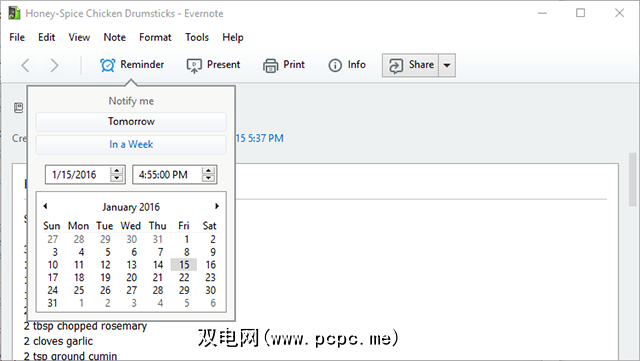对于那些拥有截止日期记录的人来说,Evernote的提醒功能非常有用。提醒是基于每个注释手动设置的,一旦添加,提醒便会放在注释列表的顶部,这样您就不会忘记。您甚至可以收到警报,例如通过电子邮件。