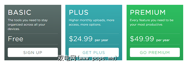 Plus层的价格为每年25美元,并将限制提高到每月1 GB的新数据。您还可以离线访问移动设备上的数据(免费版中不可用),以及使用移动密码通过密码锁定Evernote的功能。