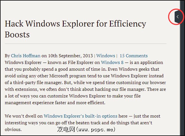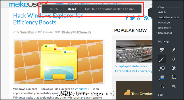如果您在调整大小模式下使用浏览器很多(不是全屏显示) ,这对您来说是一个有用的功能。在调整浏览器大小之前以全屏模式剪辑文章时,您可能会发现剪辑后的文章大于浏览器窗口。因此,要浏览它,只需按住 Ctrl ,同时单击即可左右左右浏览文章。
