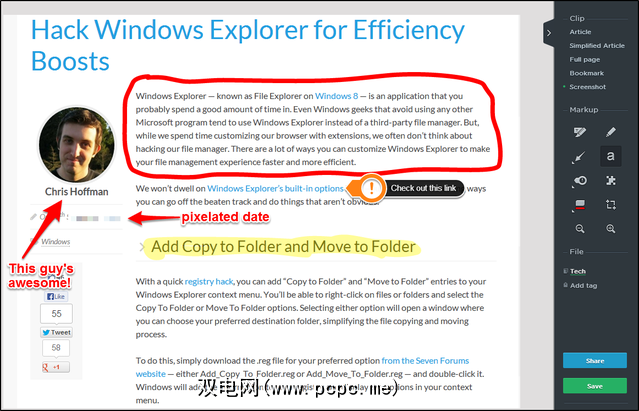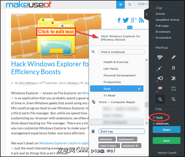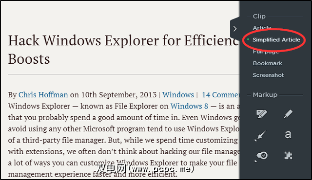 除了将文章剪辑为屏幕截图外,Evernote还具有将Skitch 集成到了Web Clipper中。不幸的是,注释功能除了突出显示外,目前仅适用于屏幕截图,但这只是一个开始。
