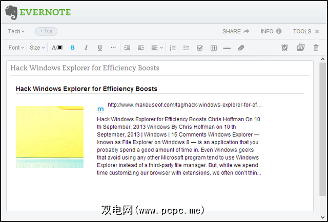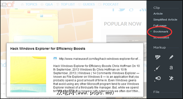 Web Clipper始终具有将文章添加为书签的功能,也就是仅保存链接。但是,书签功能现在包括文章预览,它可以为您提供比通过Evernote中保存的链接查看标题时更多的信息。
