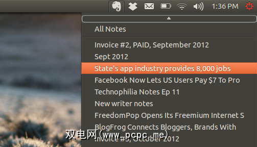 您也可以从系统托盘打开一个包含所有您的笔记,按笔记本排列。请注意,不支持嵌套笔记本,但除此之外,一切都应该让人感到熟悉。