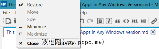 通过按Alt +空格键或右键单击标题栏在任何打开的应用程序中激活此菜单。