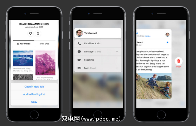 有您可以通过3D触摸执行几种类型的操作,一种称为 Peek和Pop ,另一种称为 Quick Actions 。窥视就是这么做的-按住手指而不打开就窥视一个项目,然后放开将其关闭。当您要打开商品时会弹出Pop,因此只需再按一下一点即可。快速操作指的是在挤压应用程序图标或菜单选项时可用的快捷菜单。