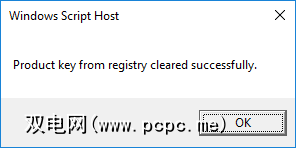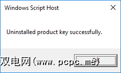 此命令将卸载现有产品密钥。等待片刻,然后在出现对话框时按确定。