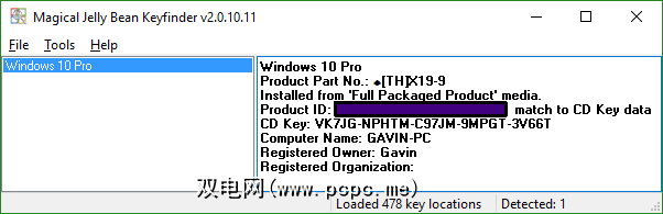 这些工具中的每一个都会显示您的Windows产品密钥。我们在本文前面使用的ShowKeyPlus,还将显示您用于升级到Windows 10的产品密钥,这非常方便。其他三个– Magical Jelly Bean,ProduKey和SterJo Key Finder –也将显示系统上安装的任何其他产品密钥。