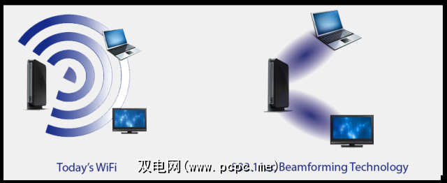 此外,“波束成形"是增强无线信号质量的第二个关键因素AC标准中的范围。传统上,Wi-Fi传输的全向信号到达所有设备以及它们之间的大量死区。波束成形使路由器能够定位您的设备并向其方向发送集中的信号,从而通过将信号放大到需要的地方来增强信号质量,而不仅仅是将其广播到家中的每个角落。