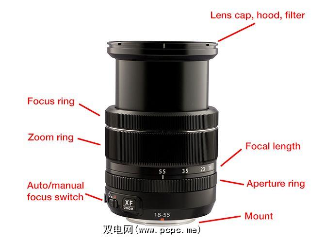 变焦镜头的范围由在毫米,例如“ 18–55mm"。第一个数字表示镜头变焦时的焦距,第二个数字表示镜头变焦时的焦距。