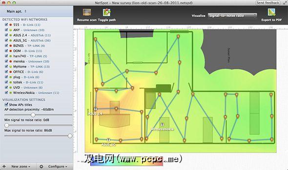 使用NetSpot for Mac或HeatMapper for Windows等应用,您可以带着笔记本电脑在家里走来走去。