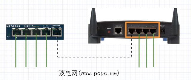 路由器的以太网端口用完了吗?没问题:只需购买交换机即可添加更多端口。交换机有多种尺寸,千兆5端口交换机的价格低至30美元。请注意,两侧的一个端口将用作互连,因此一个5端口的交换机实际上只有4个可用的端口来连接更多设备,并且您也将丢失路由器的一个端口(因此,路由器有4个当前正在使用的端口,添加5个端口的交换机将总共为您提供3 + 4个端口)。