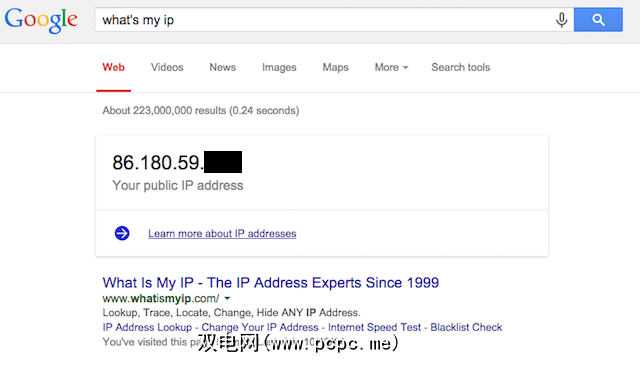 要找出您的公共IP地址,最简单的方法就是问一下Google,“我的IP是什么?"有关包括粗略位置的详细报告,请使用whatsismyaddress.com。