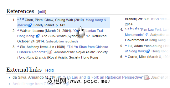 如果单击这些链接的数字,则会在页面底部看到源材料链接。