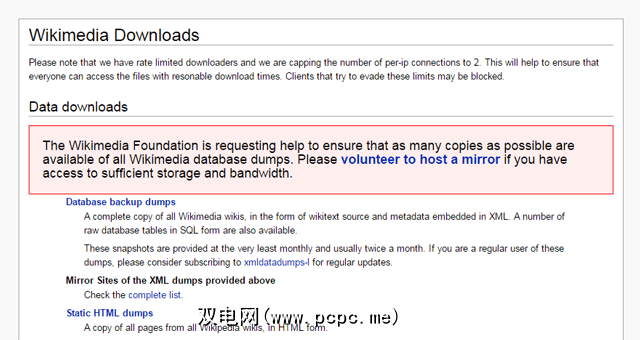 为了加快速度,您可以自愿为Wikimedia操作镜像。在这里,您可以将所有内容托管在计算机上,人们可以从中获取Wiki。显然,这需要大量计算机空间(页面上显示34TB)和大量带宽。但是,如果您觉得可以提供帮助,请与Wikimedia Foundation联系并开始他们的一天。