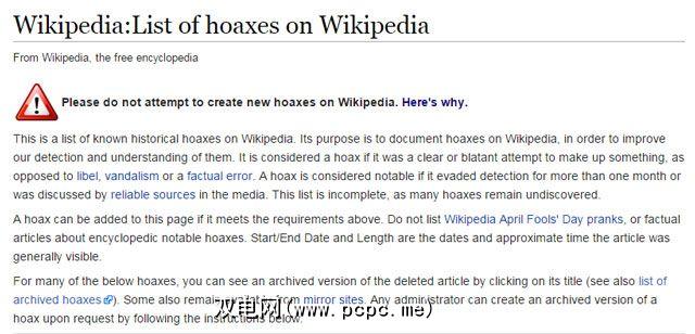 Wikipedia已编制并正在继续汇编在Wikipedia上发现的恶作剧列表。但是该页面指出,该站点上可能还没有发现其他恶作剧。
