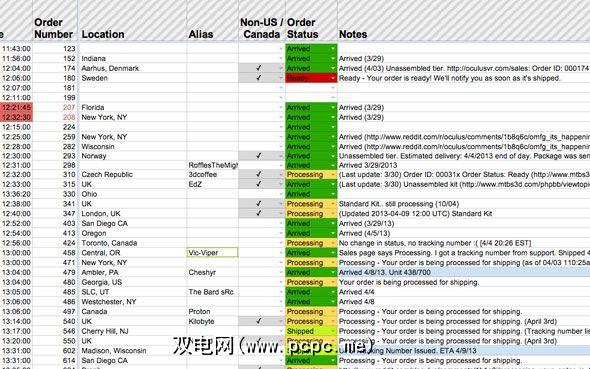 要大致了解实际的运输状态,请访问此社区。制成的电子表格,并使用此表单添加您自己的信息。