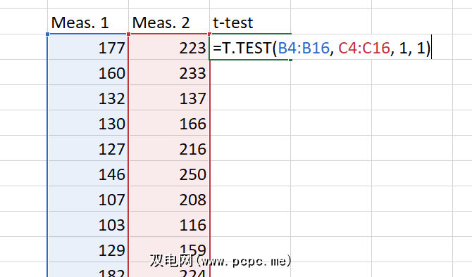 Excel的T.TEST功能正是您所需要的。语法如下所示:
