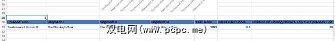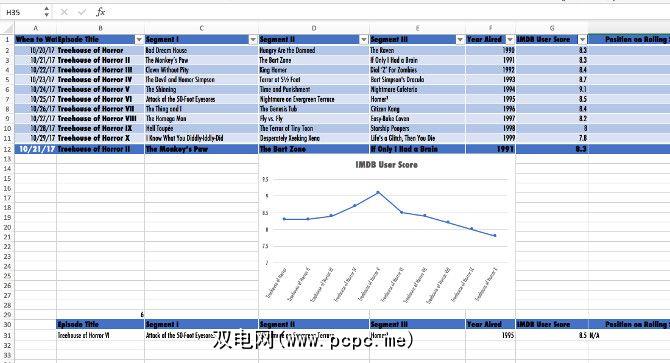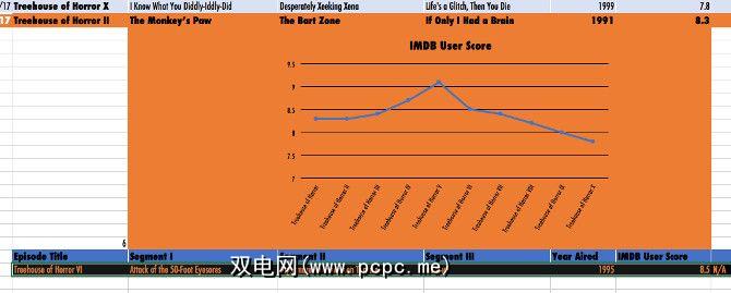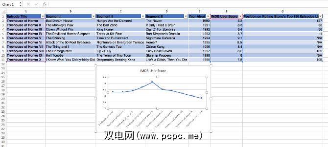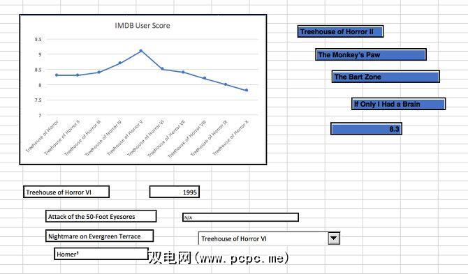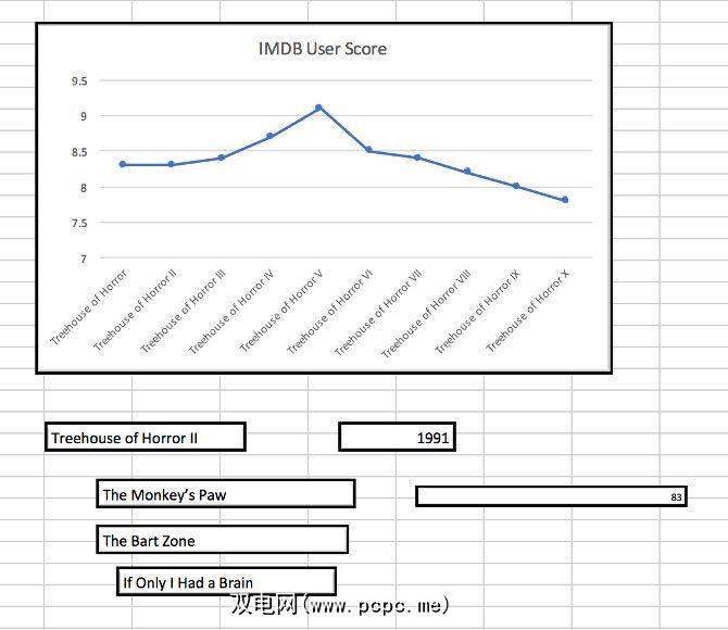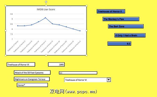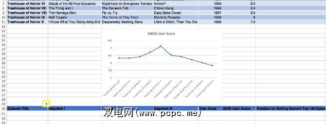 如您所见,我保留了一些东西暂时还比较简单。它仅跟踪每个情节的IMDB用户分数。接下来,如果尚未创建另一个名为 Dashboard 的工作表。