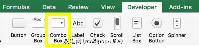 转到开发人员标签,然后选择组合框。