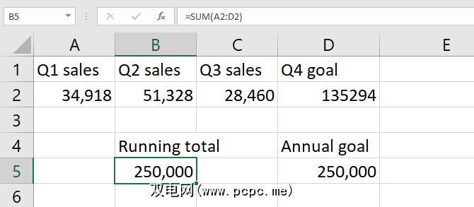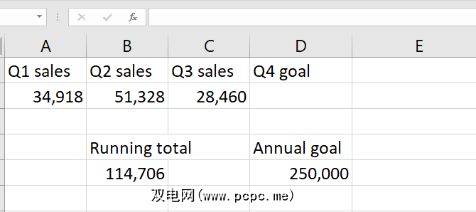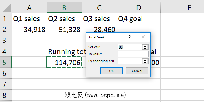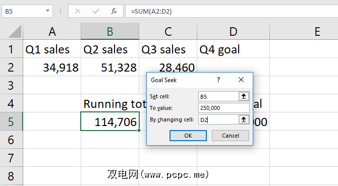 如您所见,当前的销售总量为114,706个单位。如果我们想在今年年底之前卖出250,000,我们在第四季度需要卖出多少? Excel的“目标搜索"将告诉我们。