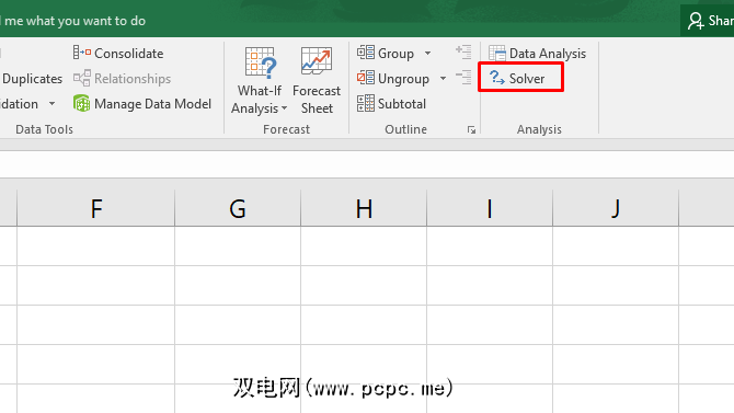 您现在将看到 Solver < 数据标签的分析组中的/ strong>按钮: