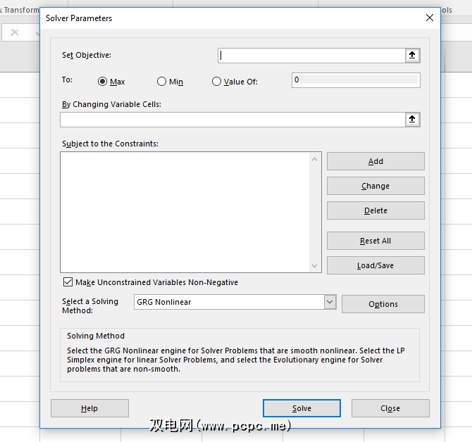 同样,如果您不知道什么无论采用哪种方式,都不必担心。如果您想了解有关使用哪种求解方法的更多信息,Engineer Excel上有一篇很好的文章为您介绍。如果您想要最大的准确性,那么Evolutionary可能是一个不错的选择。请注意,这将需要很长时间。