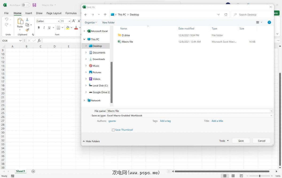 打开一个新的 Excel 文件并将其保存为Excel 启用宏的工作簿( .xlsm)工作簿类型。此文件将存储宏以对另一个文件中的数据进行排序。