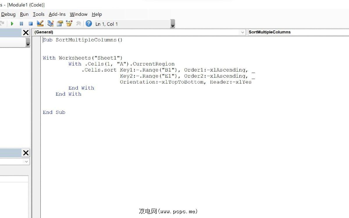 在某些情况下,您可能希望一次性对多列中的数据进行排序。为此,您可以使用以下代码来实现您的目的:
