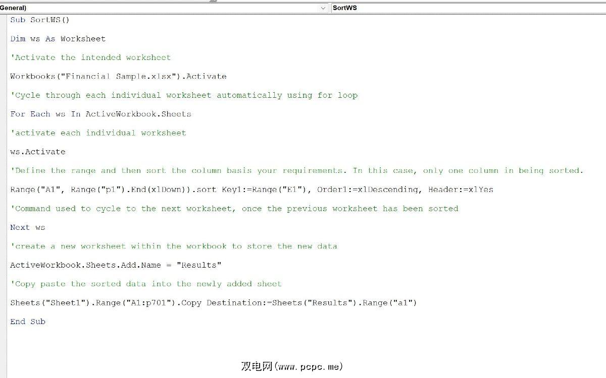 End Sub所有以单引号开头的信息都是 VBA 注释。这些不会在执行阶段执行。但是,您添加的每个 VBA 注释都是对代码的有意义的添加,因为您可以在代码部分中定义本质、功能和其他相关部分。
