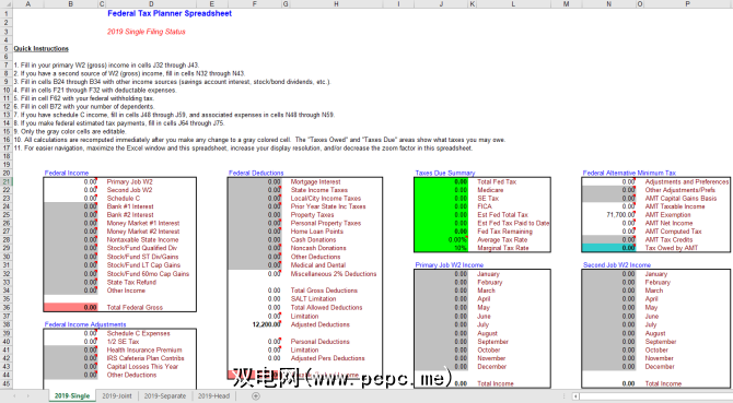 让我们从最全面的计算器之一开始。税务计算器的创建者Glenn Reeves十多年来一直在免费更新和分发他的自定义Excel模板。